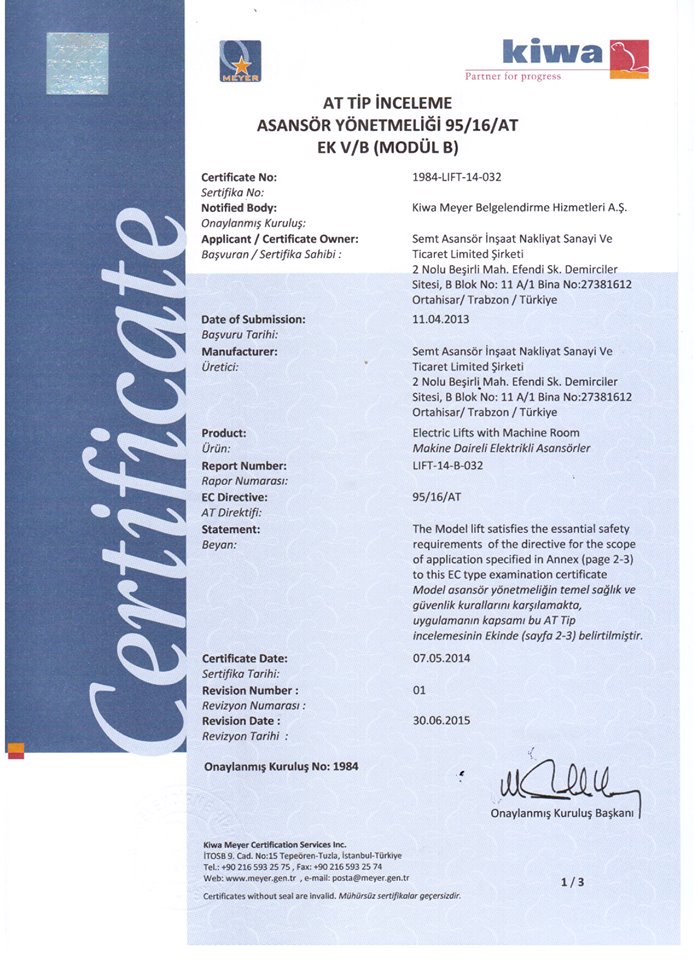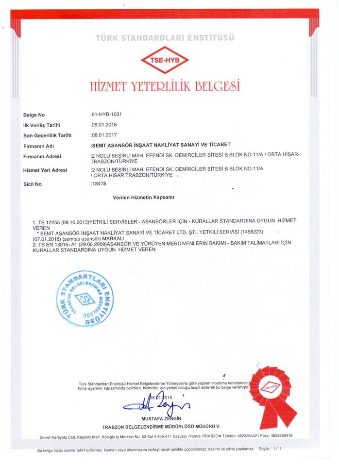 Belgeler - Semt Asansör | Trabzon